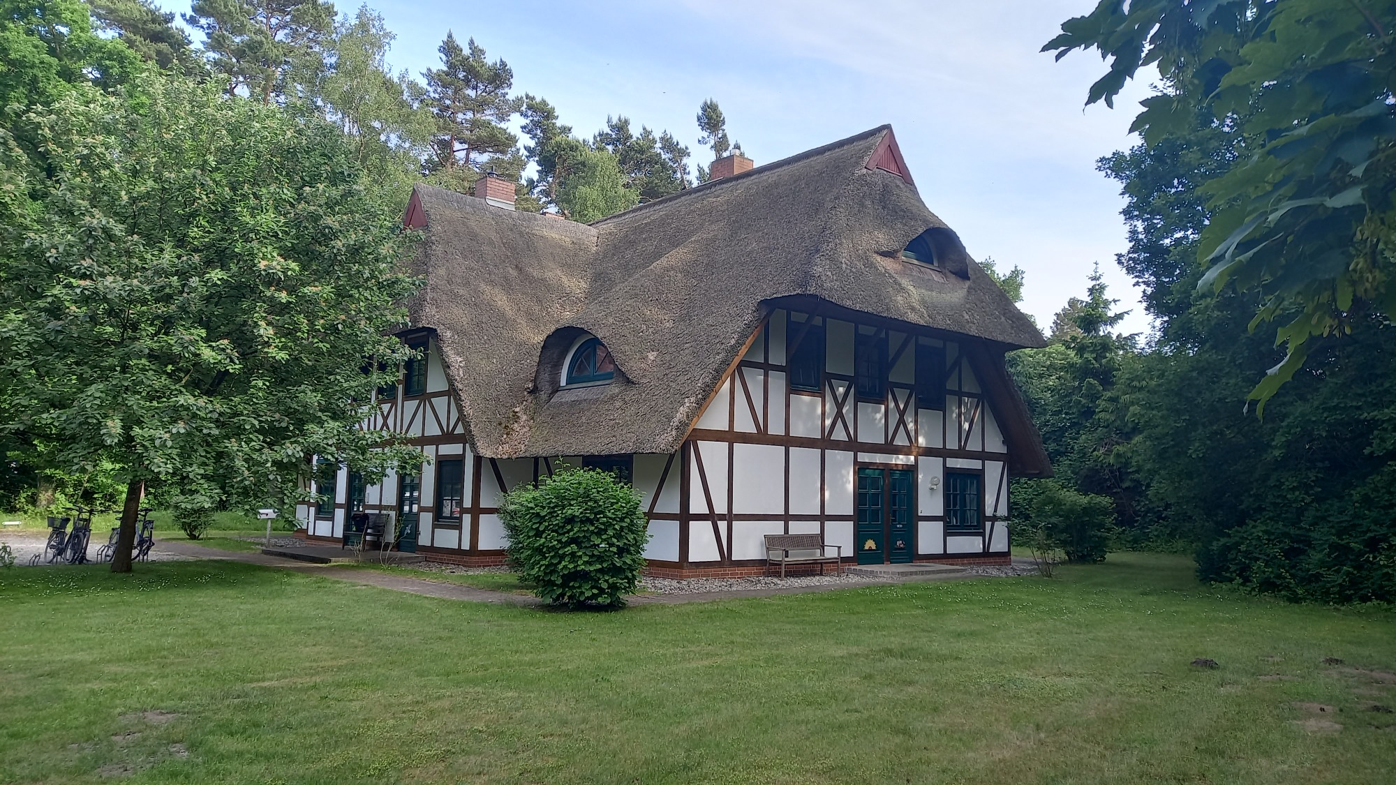 Von hier aus starten Sie unmittelbar auf den Rad- und Wanderwegen in Richtung Weststrand. Der Weg durch den Wald beginnt praktisch vor der Haustür und führt Sie durch eine der schönsten Naturlandschaften der Region – ideal für alle, die Erholung, Weite und Natur suchen.