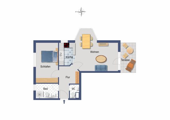 - 58 qm Erdgeschosswohnung für zwei erwachsene Gäste